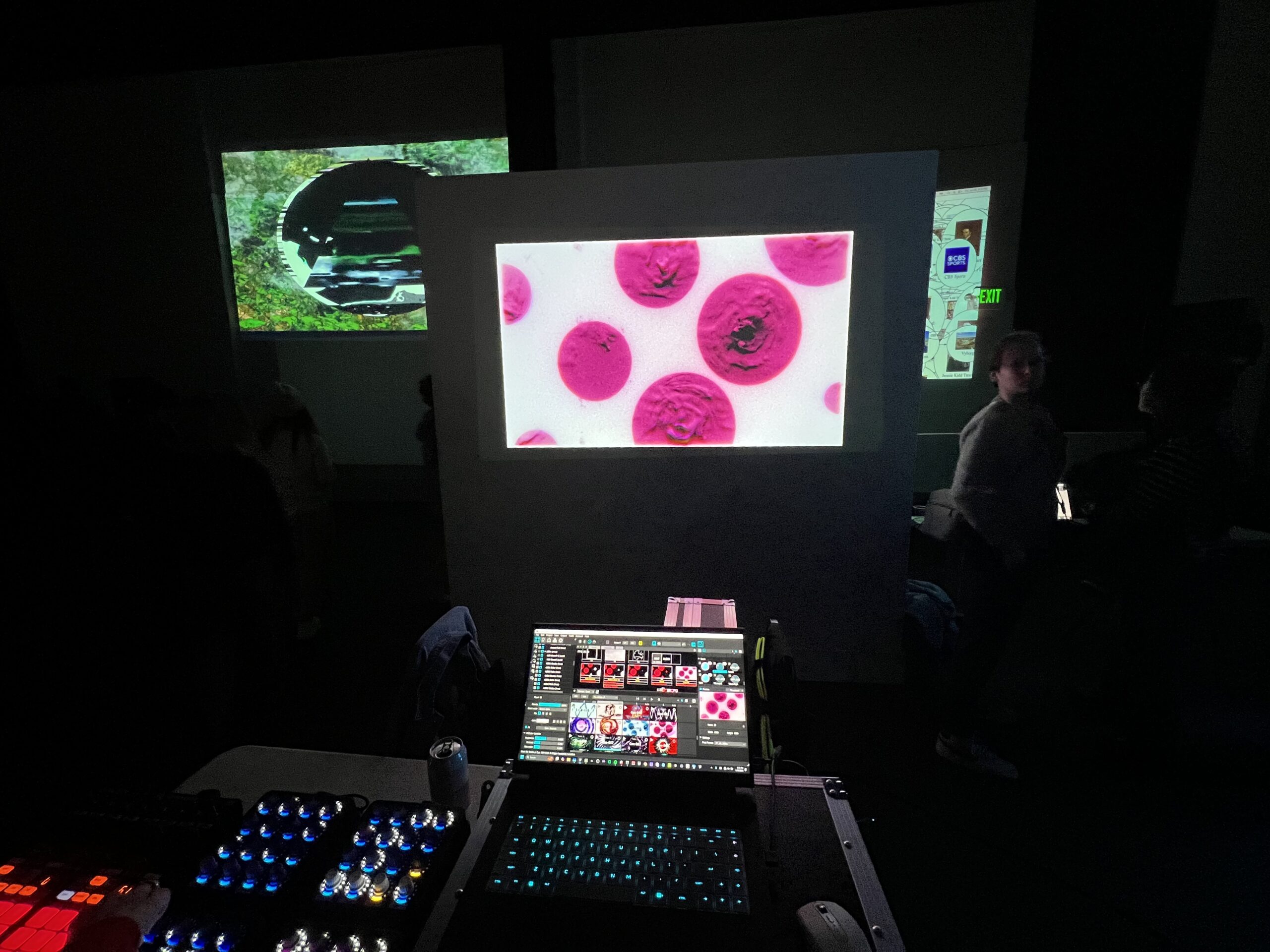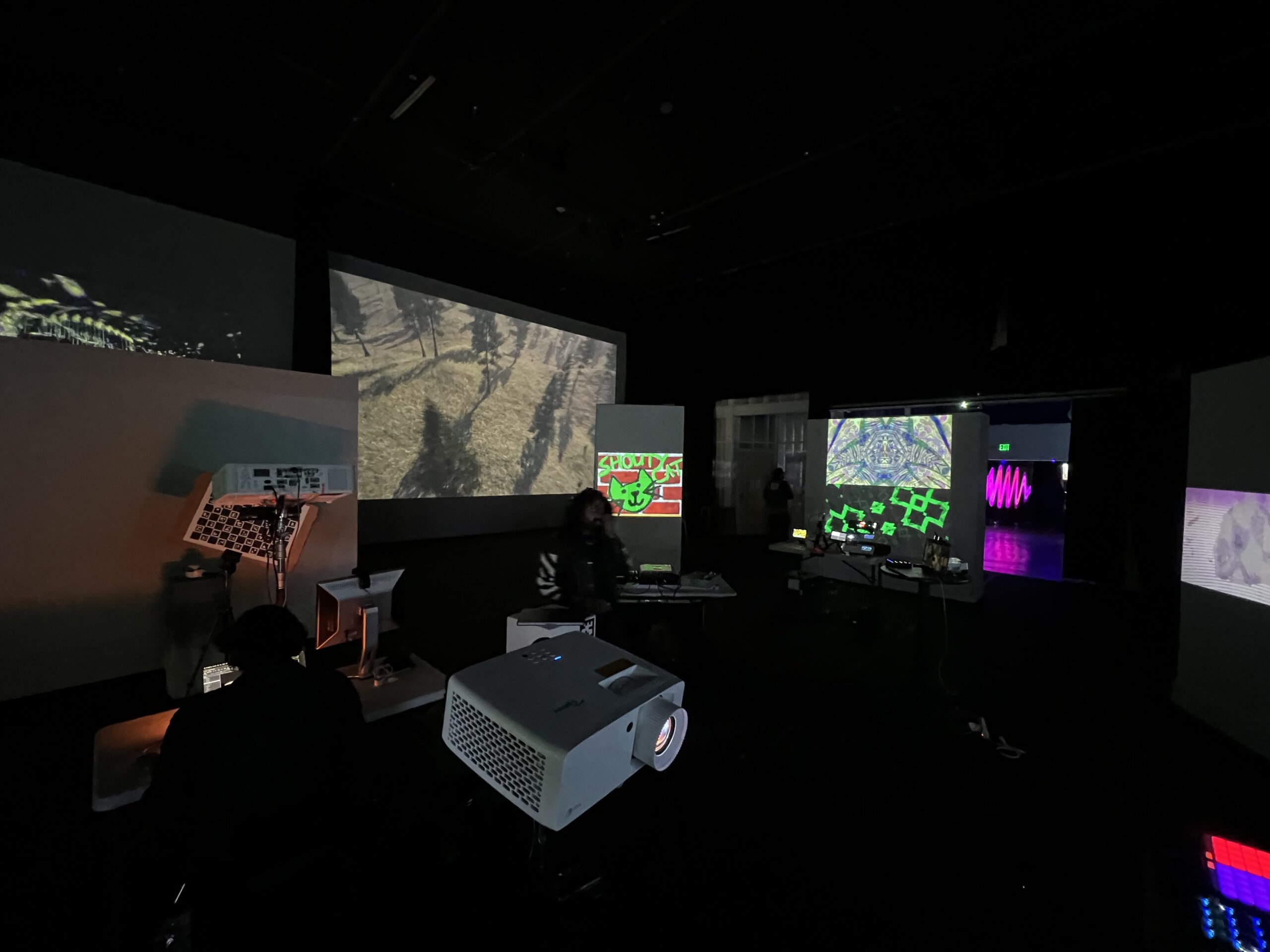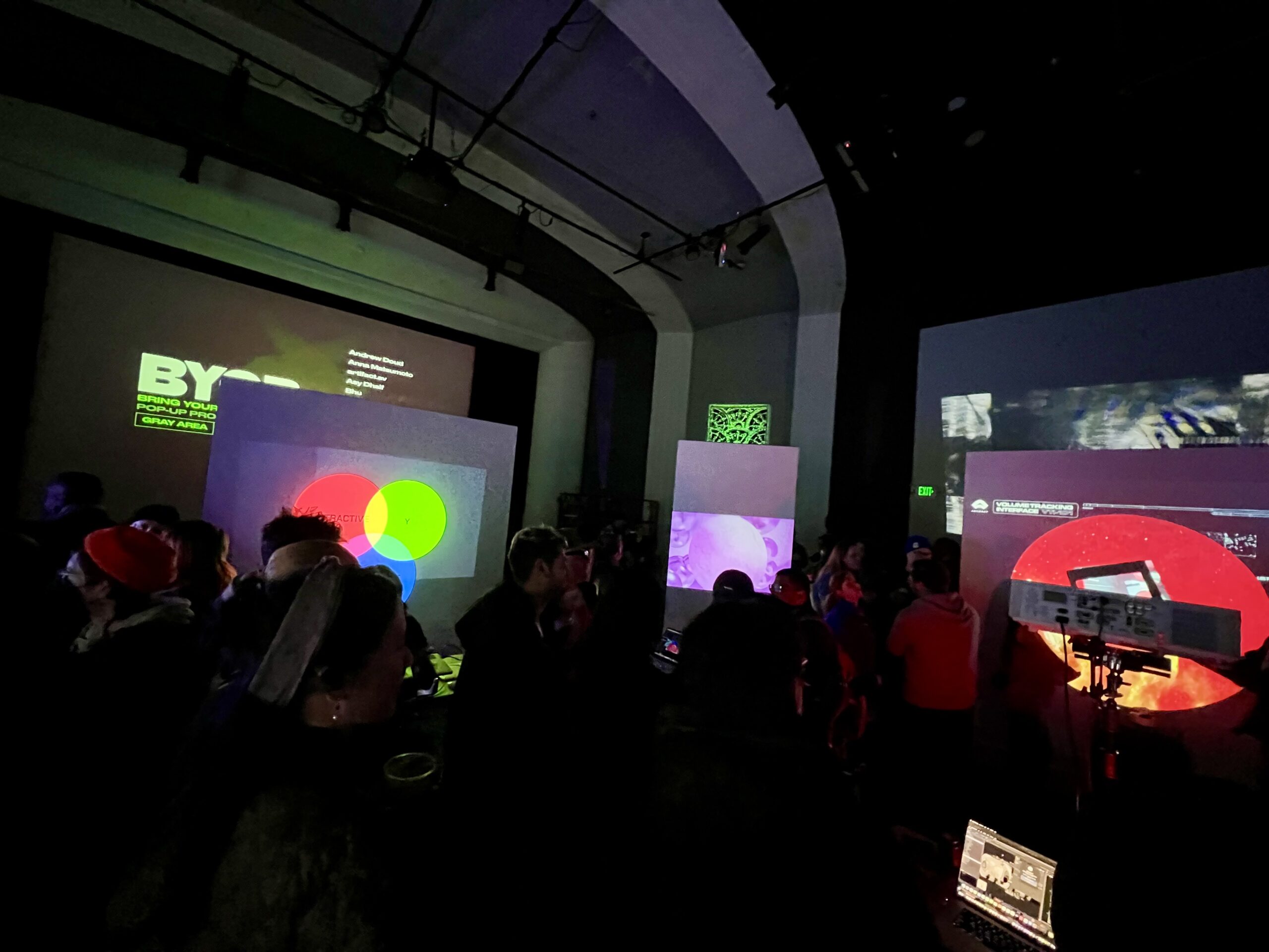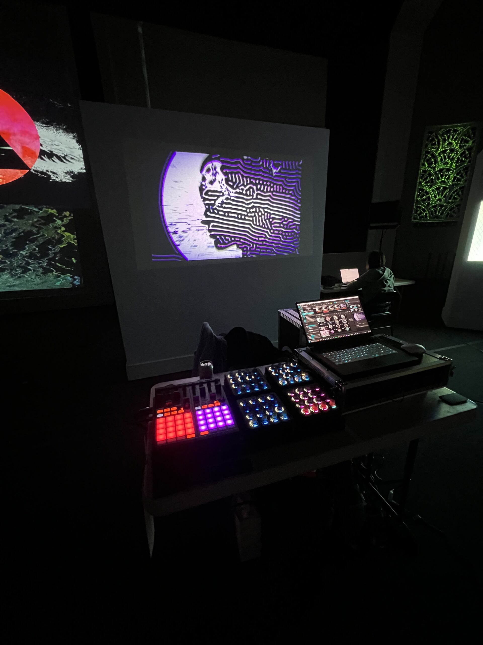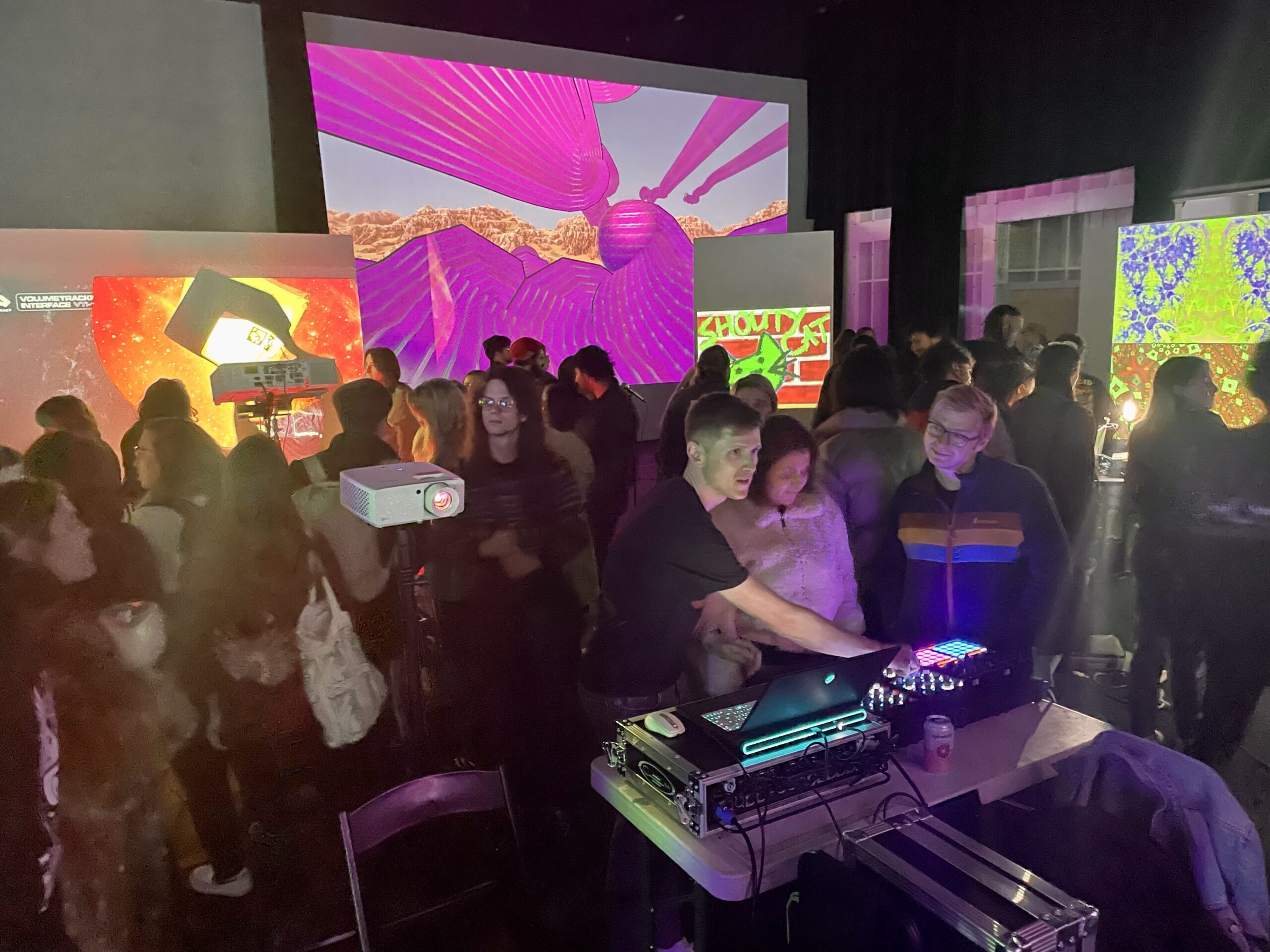 I attended the Bring Your Own Beamer (BYOB) event at Gray Area in San Francisco, in February 2025. I had never attended one of these before, and I met so many amazing artists & attendees. Guests played with my MIDI control board & VJ workflow, and it was great seeing what people came up with. Can’t wait to go back!